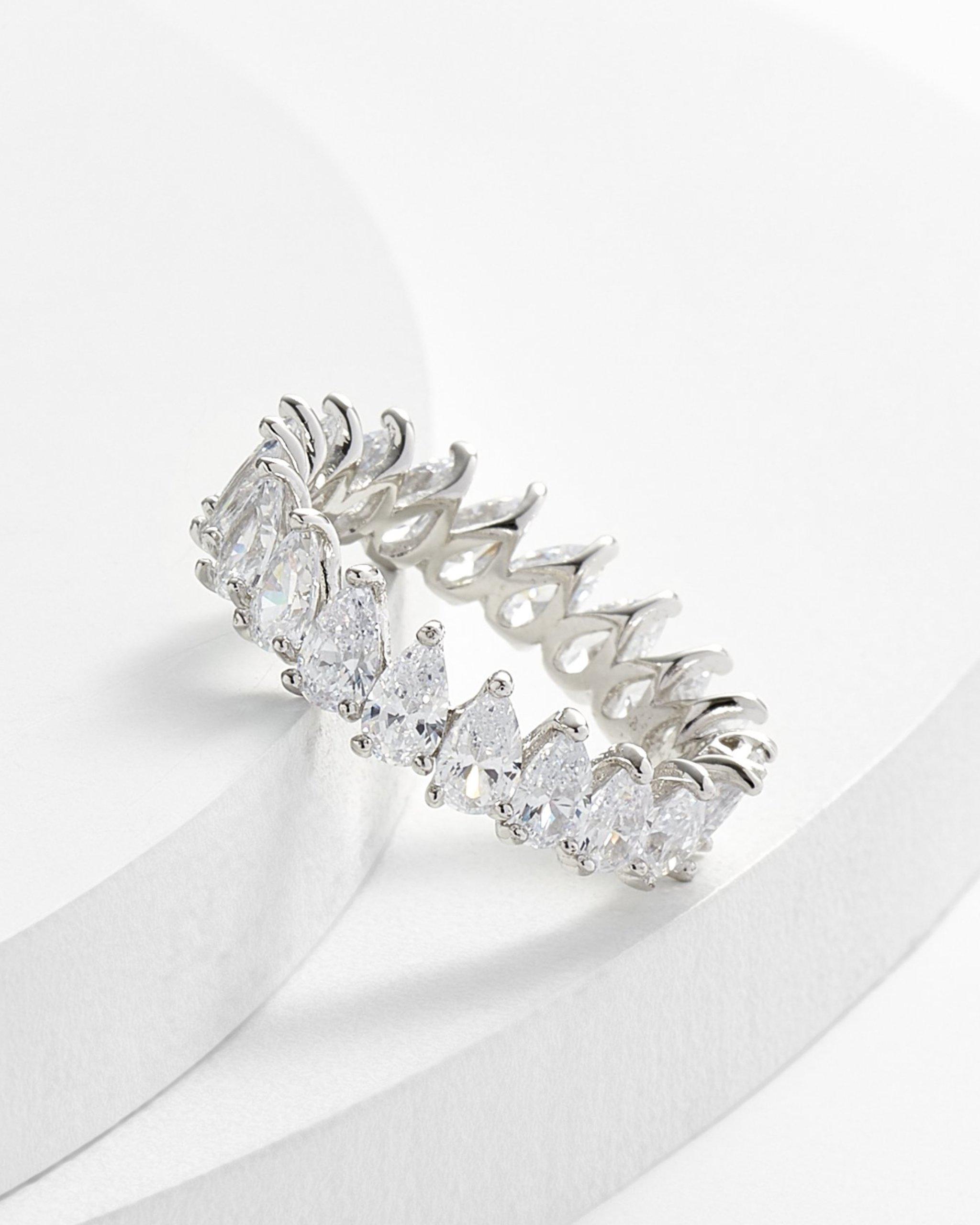 For the woman that knows even the tiniest details matter, the Rhea Pear Shape Diamonette Eternity Band Ring is an instant classic. Captivate on any occasion with this immaculate and luxurious ring made from 14k gold-plated sterling silver with prong-set pear-shaped clear diamonettes that encircle your finger with precision. Elegant for evenings out, it is a stunning piece that instantly adds opulence to your favorite ensembles for pure glamour and prestige.