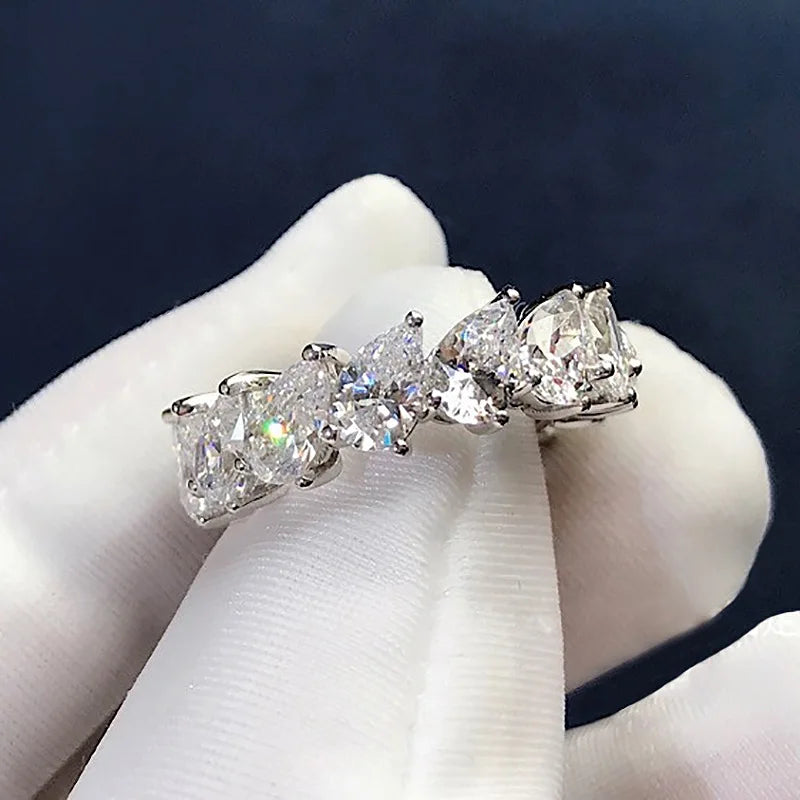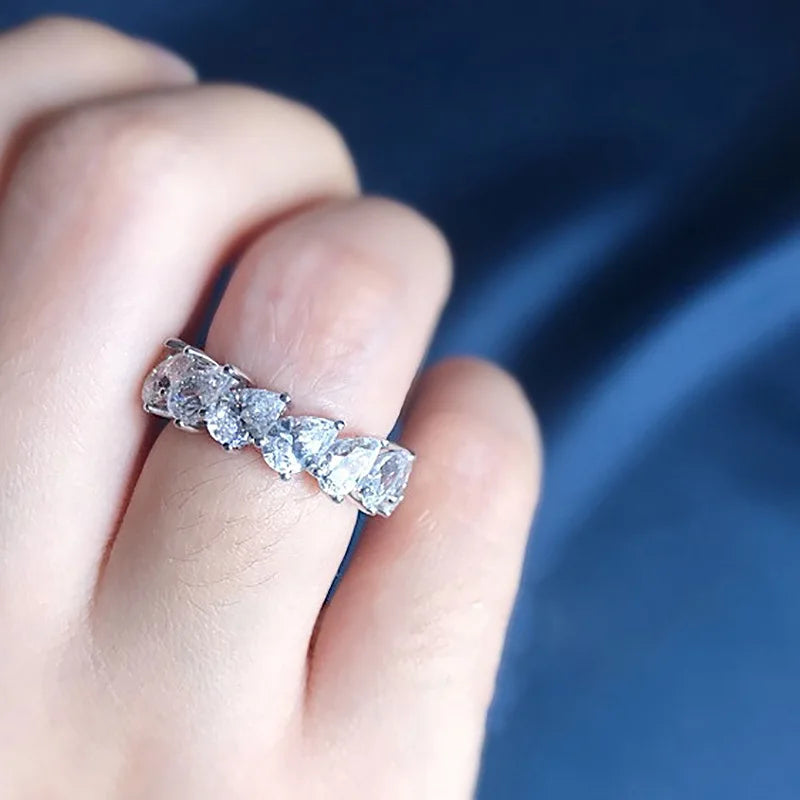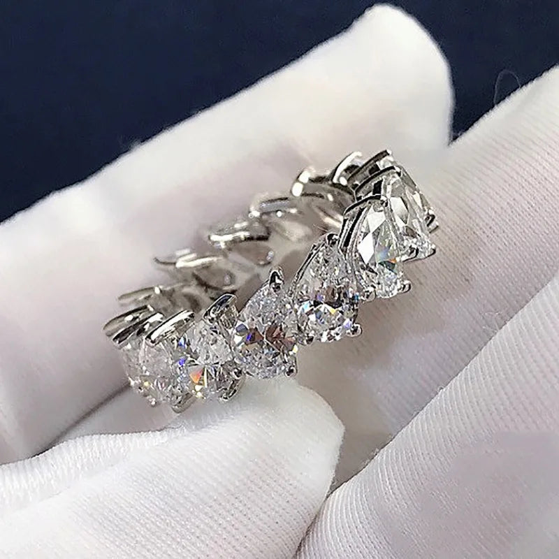 Rhea Eternity Pear cut Lab Diamond Ring White Gold Filled Engagement Wedding band for Women Luxury Party Jewelry