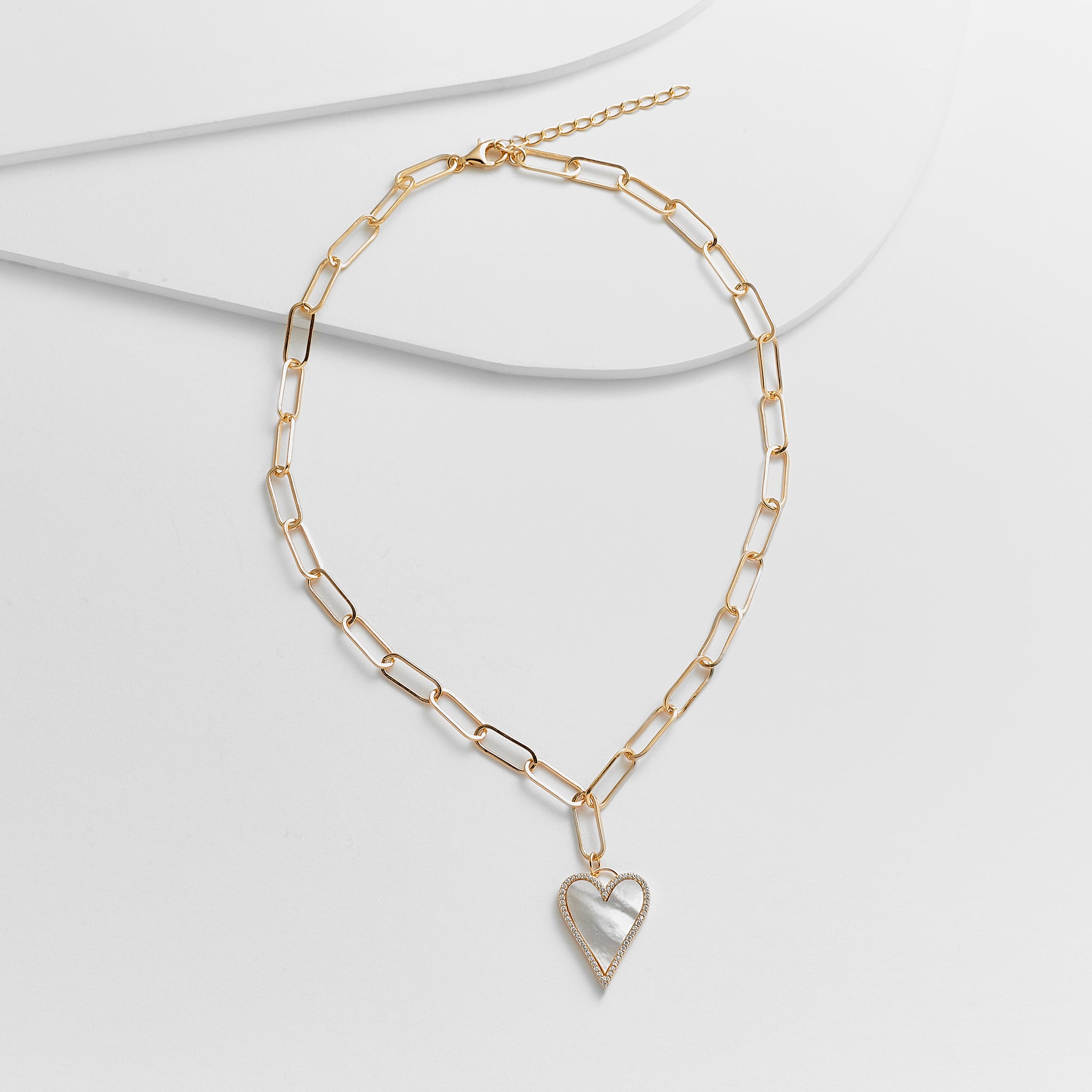 Glam up your everyday look with this beautiful MOP Heart Pendant on a Paperclip Chain. Subtle but chic, the 14K gold vermeil over sterling silver pendant shimmers with clear diamonettes. The 16" paperclip chain is nickel, lead, and cadmium-free for an environmentally responsible and stylish statement.