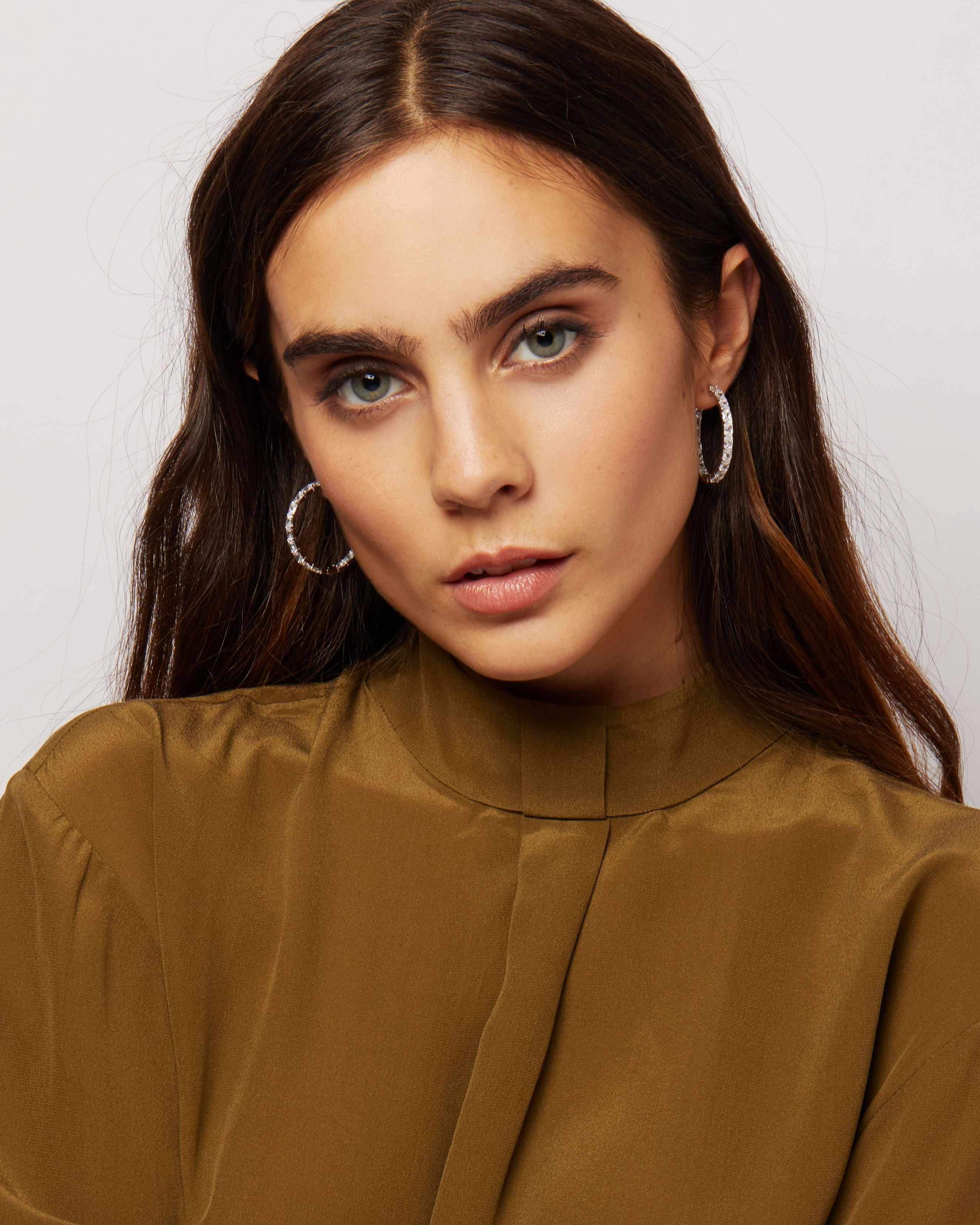For extraordinary evening style, you can always count on a classic to match with your favorite ensembles. Zane Baguette Continuous Hoop Earrings draw their inspiration from the indulgent tennis bracelet. These large hoop earrings feature a continuous closure for a seamless appearance front to back. Bedazzled with large baguette-cut clear diamonettes fit into a 14k gold-plated sterling silver body, these earrings have the power to take a simple black dress and make it memorable. Bring any evening to life with these stunningly elegant earrings!