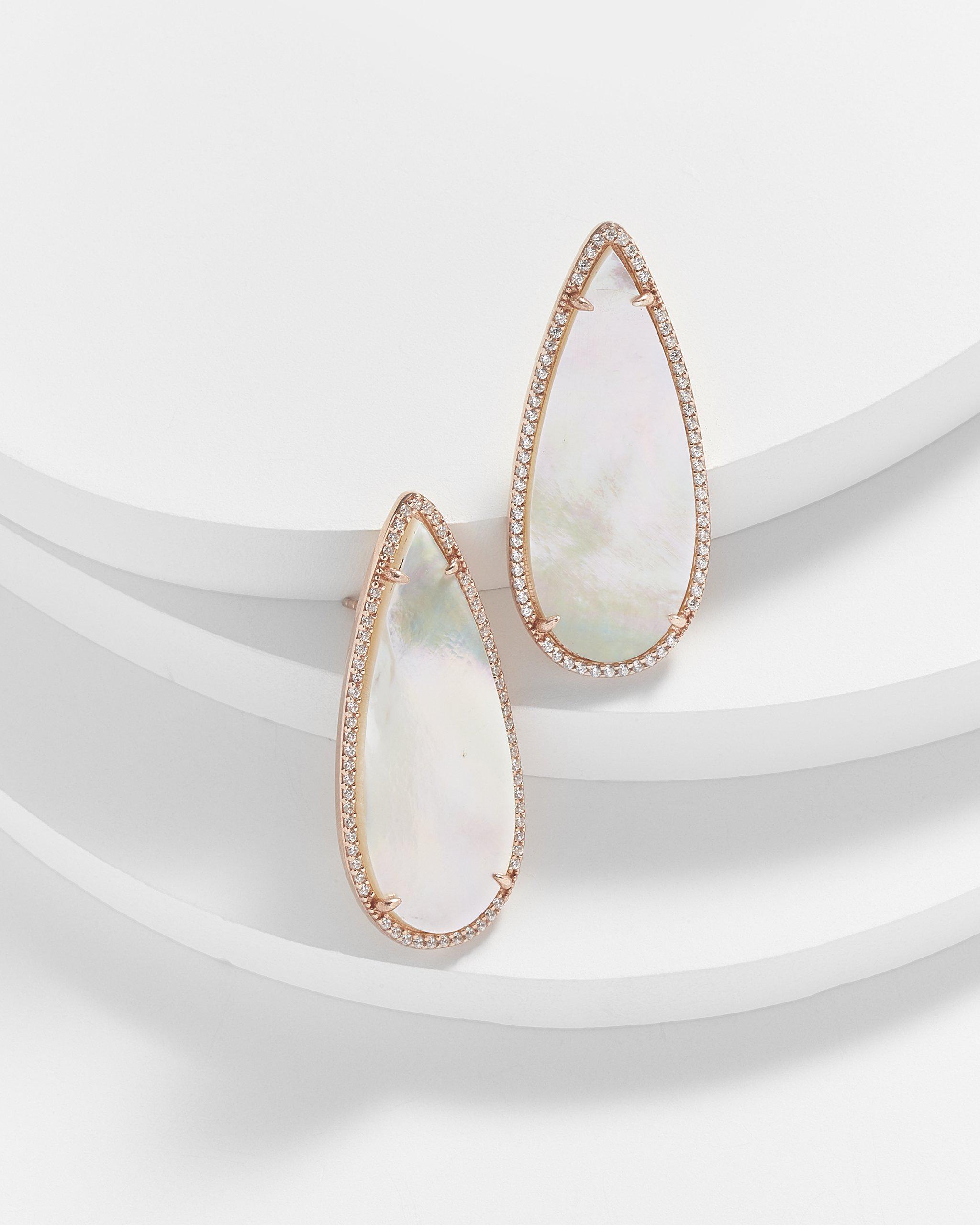 Prefer pear-shaped cuts? Choose Amber Pear-Shaped Mother of Pearl Stud Earrings for a timeless style that is all about elegance. Refined and quietly elegant, mother of pearl is bonded to 14k gold-plated sterling silver pear-shaped settings, with dazzling clear diamonettes for a luxurious appeal. Ideal for upscale events or casual affairs, these will be the earrings you reach for time and time again. Their uniquely classic appeal works beautifully for every occasion, making them a must-have no matter how you choose to wear them.