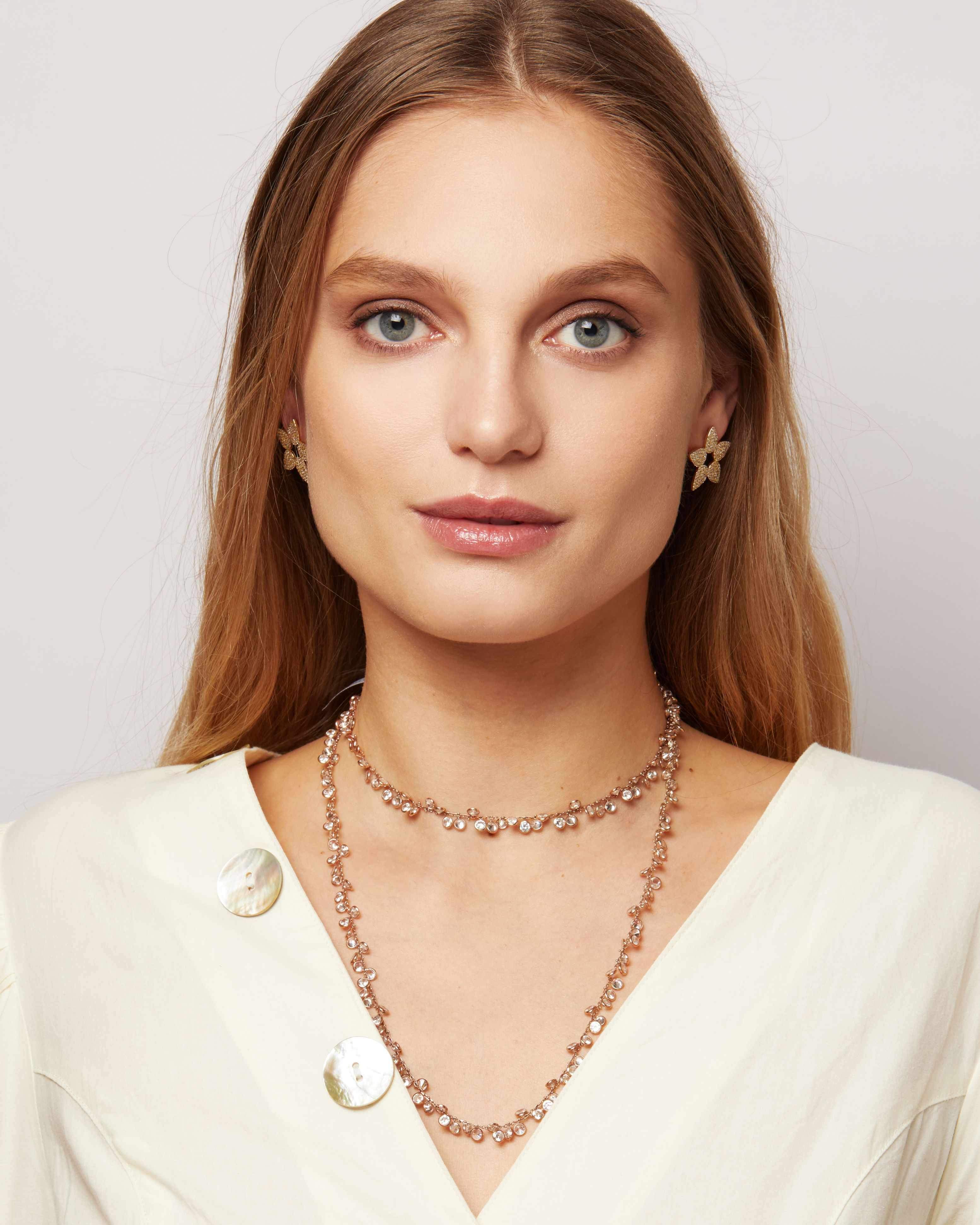 Classically dignified style is yours with the Antionette Twisted Diamond by the Yard Necklace. This 36-inch length 14k gold-plated sterling silver adornment features a twisted chain with countless pave-set clear, round diamonettes dangling in every direction. Like the leaves of a branch, it adds an earthy yet vintage touch to your ensembles. Wrap it around for a double-necklace effect that catches the light in every move you make to create a gorgeous daytime look or add mystique at night.