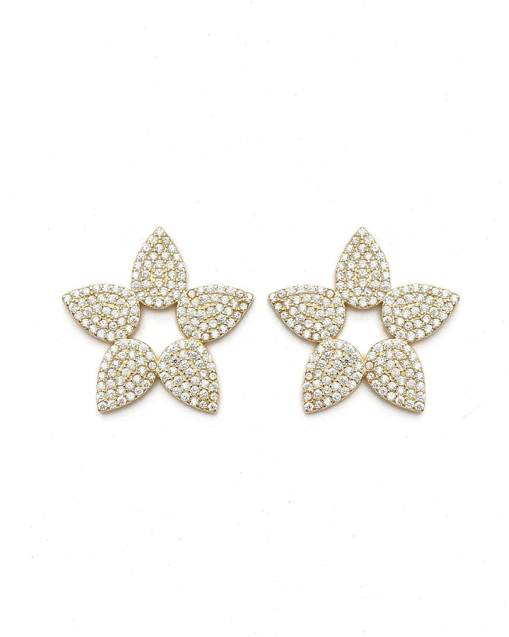 Add a feminine floral touch your casual daytime wear with the Rose Flower Petal Earrings. A comfortably stylish look awaits to accentuate and frame your face. Made from 14k gold-plating over authentic sterling silver, each of the five petals is covered with clear diamonettes. Large enough to extend beyond the ear, one petal attaches to your lobe for a truly dazzling effect. Jeans, blouses, flowing summer dresses, and fitted skirts alike will all work well with these simple yet versatile earrings you’ll love to sport for every occasion.